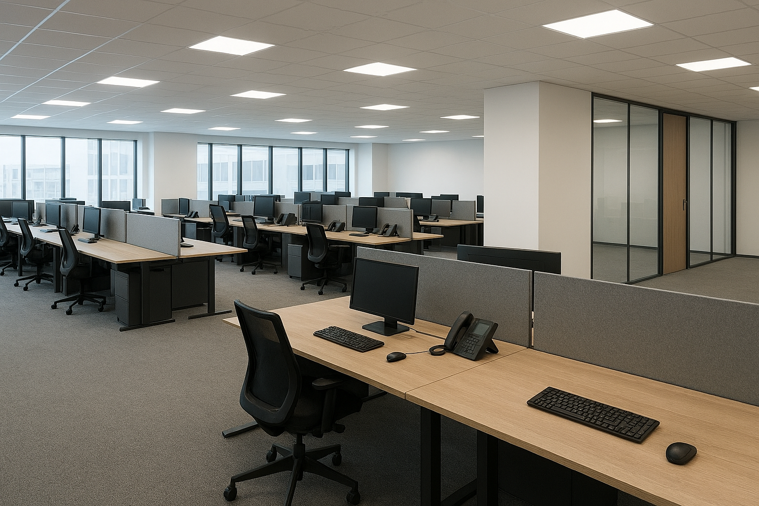 - Quiet, enclosed areas for meetings, private discussions, or concentrated work.